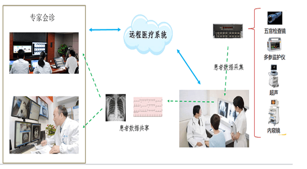 • 高级会诊中心、本院专家、外院专家协助完成多科室综 合会诊,通过互联网自由连接院内外专家,无损呈现医学 影像,面对面会诊效果,高效解决患者病痛。 ,医生对不方便移动的重症患者进行远程就诊 ,与医学影 像及数据系统对接,随时记录、查询病人各种信息。 。远程与移动救急车视频对接,指挥应对急救病人,提高 患者抢救率,为急救患者提供及时有效的院内资源